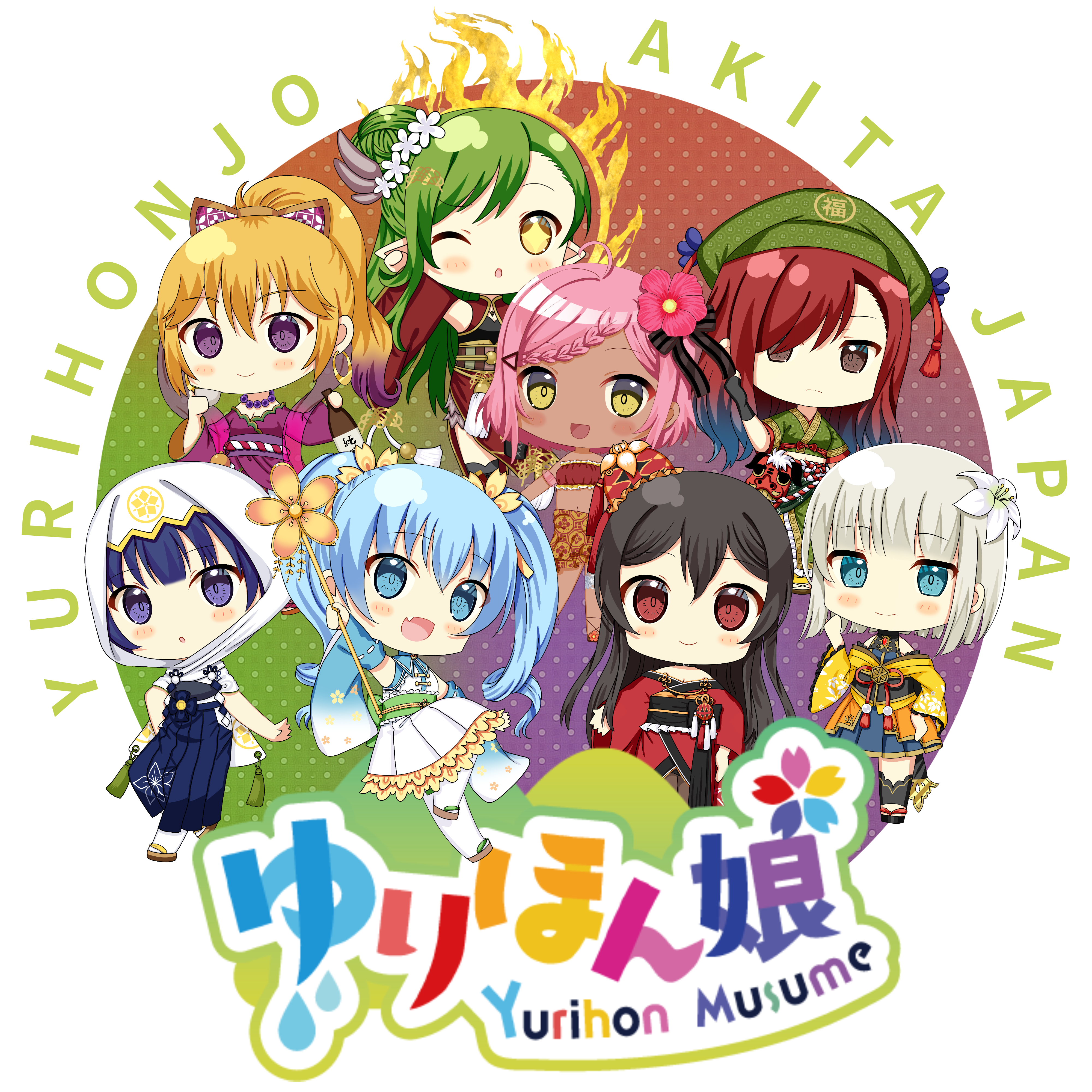 ゆりほん娘たち8人のSDイラストを左胸ワンポイントにしたシンプルデザイン